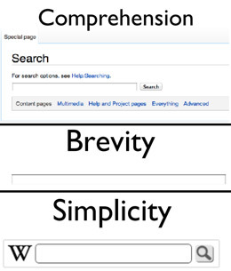 「不必要な要素を全て排除する」ということに対する直感的反応は、しばしば「全てを排除する」という行動に変換されることがあります。ここで明らかに問題なのは、理解に必要なコンテキストが欠けているということです。シンプルさとは、不必要なものを取り除いた繊細な美のようなものですが、そのコンテキストの理解に必要なだけの要素は残す必要があります。Hampton氏がデザインを手掛けたウィキペディアモバイルを例として挙げてみると、このコンセプトを見事に表現していることがわかります。