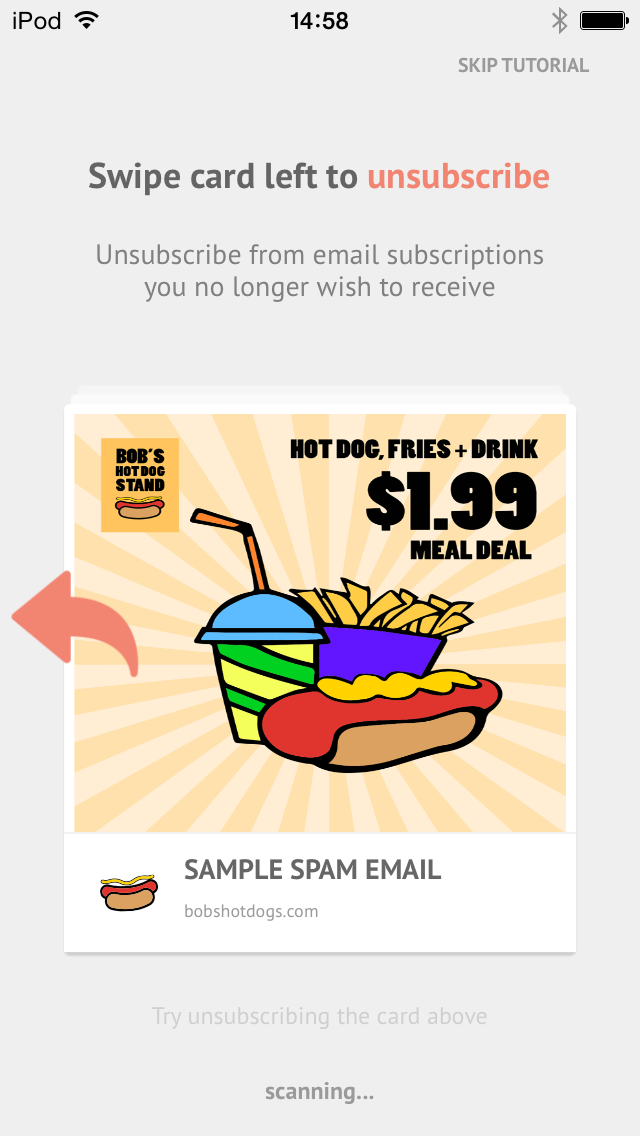 Unroll.Meにはウェブ版とiOSアプリ版があります。iOSアプリ版では、スワイプでカードを画面外に捨てるような動作で、メルマガを3種に分類していきます。