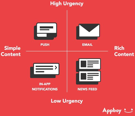 ヒント:効果的なモバイルアプリのメッセージング戦略を確立する最も良い方法は、異なるタイプのメッセージを使用することです。例えば、プッシュ通知や、メール、アプリ内通知、そしてニュースフィードのメッセージなどです。メッセージを多様化しましょう。優れたUXを作るため、メッセージは完璧に調和して連携する必要があります。