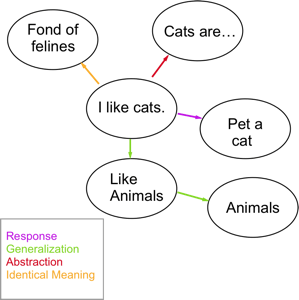 構文マップのおかげで、私たちは発言から異なる応答や意味を形成することができます。望みとあれば、ユーザーは複数の応答を作成したり、アイディアを複製したり、広義的に考えたり、特定の一般論に焦点を当てたりできるのです。