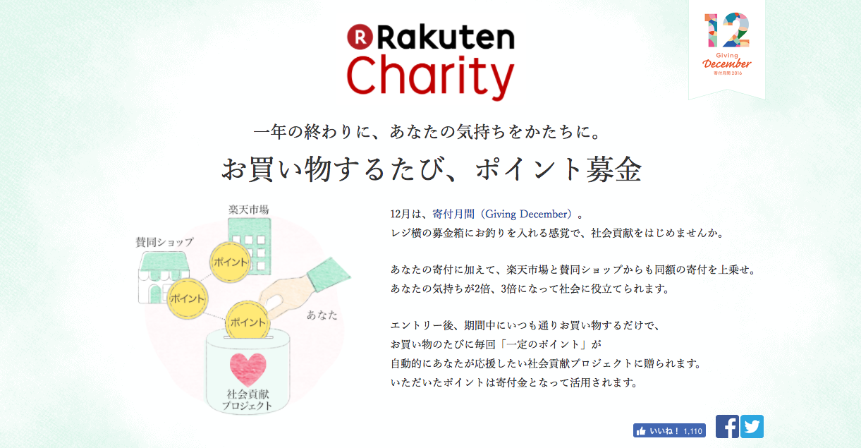 中川:楽天市場とショップとユーザーを巻き込んで、ユーザーがポイントを寄付したいという意思表明をしてくださった場合に、ショップと楽天市場から同額のポイントを上乗せして、ユーザーの気持ちが3倍になって社会貢献活動に活かされる、という取り組みでした。