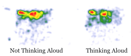 思考発話法によって違いが生まれた理由の1つとして仮説を立てるとすれば、被験者は研究者に説明するときにスクリーンから目を離しているか、もしくは説明するエリアだけを見ている可能性があります。