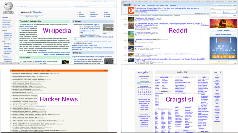 Wikipedia、Reddit、Hacker News、Craigslist。これらのWebサイトは、お世辞にも良いデザインとはいえないですが、それにもかかわらず人気があります。なぜ人気があるのか、それはユーザーがもっとも必要としているものを確実に提供しているWebサイトであるからです。