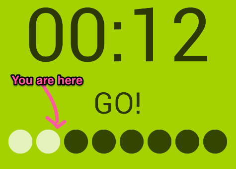 アプリ上のさまざまなエクササイズを実施することで、ユーザーはエクササイズ全体のどの辺りまで進んだのかが、わからなくなることがあります。そのような場合、My Tabataユーザーは、画面下部にあるステータスバーを使用して、最小限のUIで進捗状況をすぐに確認することができます。