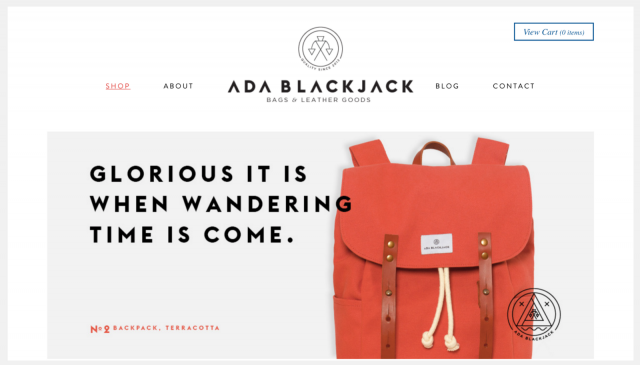 ヒーローイメージとはミニマルデザインにおける最重要要素で、ページ上部におく印象強い写真のことです。版権:adablackjackgoods