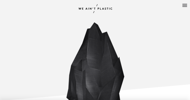 • コントラスト:少ない要素でデザインしなければならないので、ビジュアルの階層がわかりやすくなるよう配慮しなければなりません。下の『We Ain’t Plastic』の画像例では、白い背景に真っ黒な宝石が配置されています。コントラストがわかりやすいデザイン例で、まさにミニマルデザインの本質を表したものと言えるでしょう。