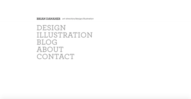 Brian Danaher氏によるポートフォリオのデザイン例。多くのデザイナーがこれこそミニマルデザインのサイトだと声を揃える典型的なデザインです。