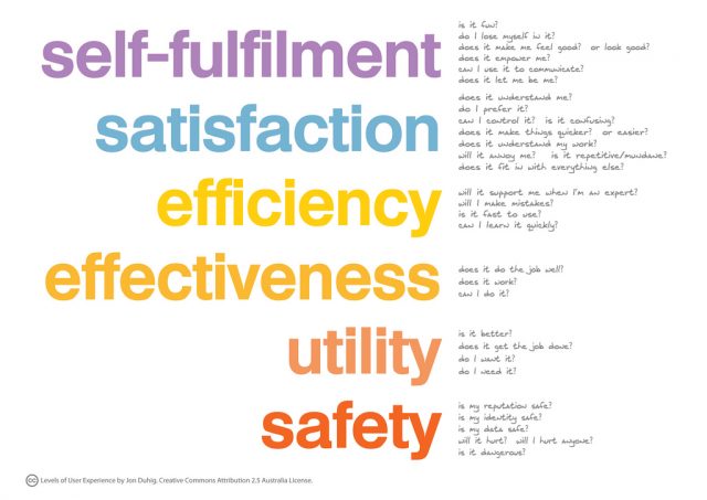 マズローの欲求階層説と同じく、デザインもピラミッドの上位欲求に進む前に、最下層のニーズが満たされる必要があります。