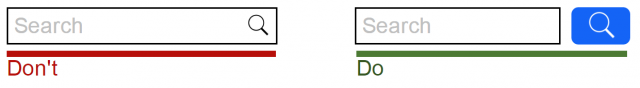 検索ボックスのデザインでもっとも重要なのは、ユーザーに気づいてもらうことです。アプリやWebサイトにおいて検索が重要な機能である場合、検索ボックスがすぐ見つかるように表示しなければなりません。