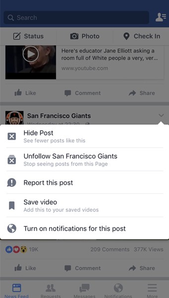もう1つのインターフェイスのカスタマイズの例は、Facebookです。Facebookでは、ユーザーは興味のあるコンテンツを自由に選択できます。また、ある特定の人物、ページまたは投稿に関しては、個別の通知を設定することができるのです。