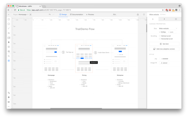 ここでUXPinのデザインシステムのライブラリやシンボルを使って私が行っているマイクロフレームのプロセスを、少しだけお見せします。