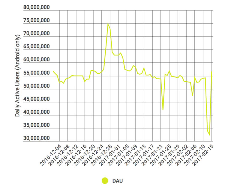 デザインが意図的であろうとなかろうと、結果は非の打ち所がないものでした。2017年2月、Snapchatは1億5,800万人以上のデイリーアクティブユーザーを獲得したのです。