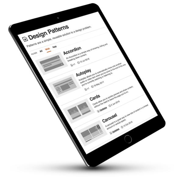 大規模なサイトをどれでも1つ訪れれば、統一感がないサイトの実例を見ることができます。ナビゲーションの位置がバラバラで、フォームの要素は別々に設定され、タイポグラフィさえも変わってしまっています。こうしたことが起こるのは、過去にどのように体系づけられたかを調べるより、ボタンが実際どう見えるか推測するほうが簡単だからです。パターンライブラリがあれば、サイトのあらゆるページに既に存在するデザインや機能を簡単に複製できるので、こうした状況が改善されます。