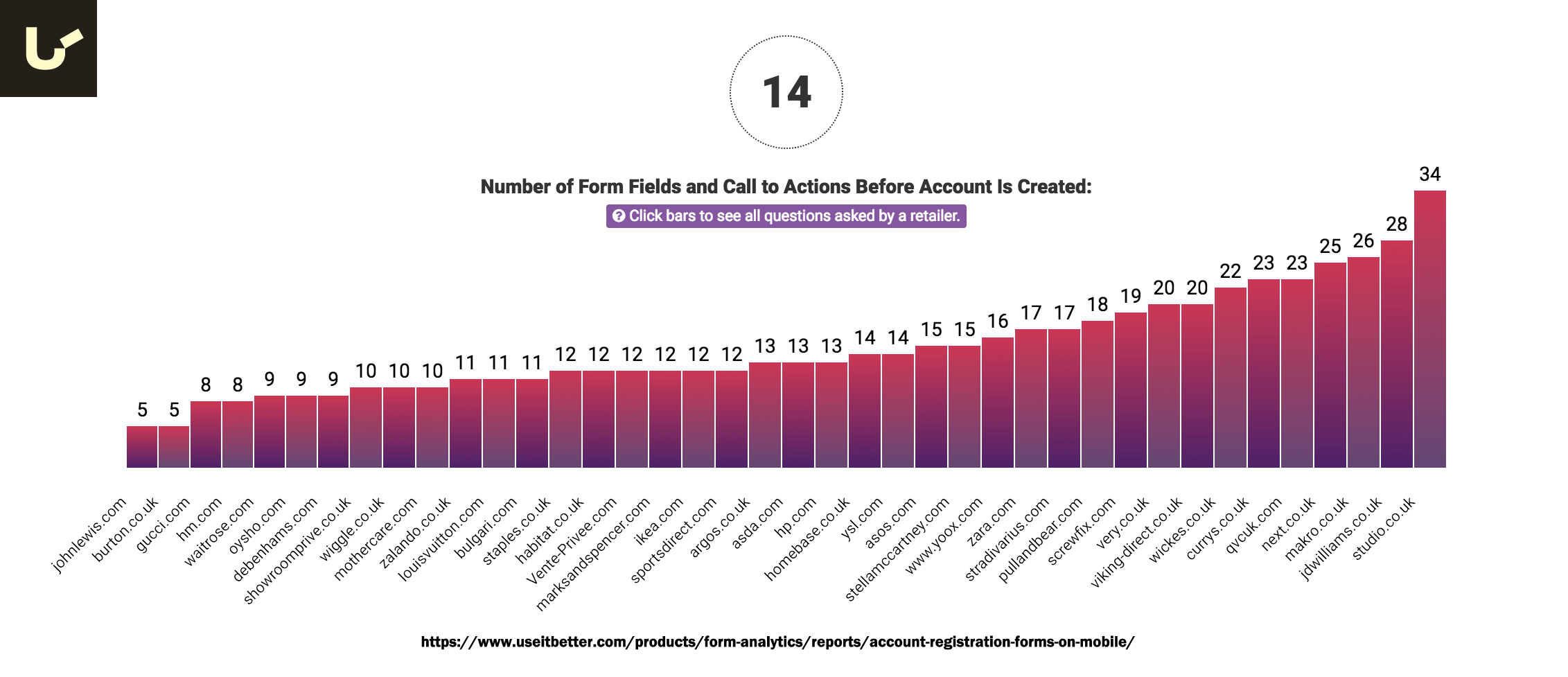 反対にmakro.co.ukやjdwilliam.co.ukといった企業は、もっとも多い23~34個のフィールドとCTAをユーザーに要求していました。