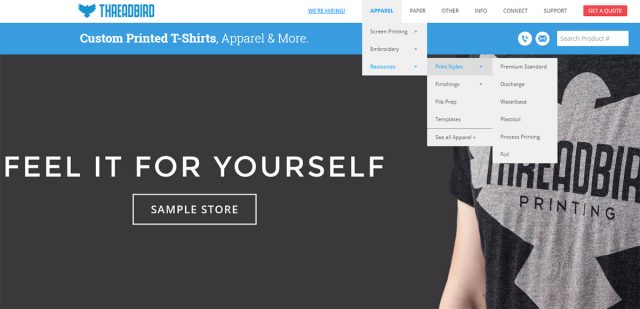Threadbirdのナビゲーションは、この効果を実践している素晴らしい例です。