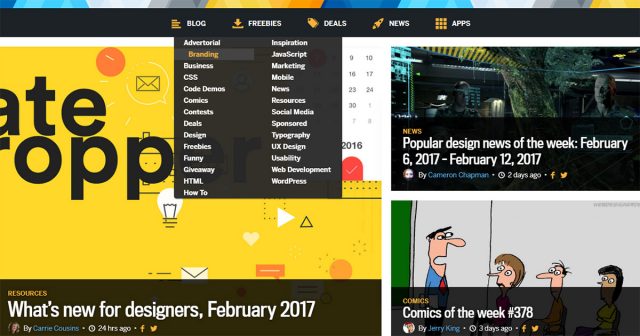 Webdesigner Depot最近デザインを見直してかっこいいアニメーションのドロップダウンを作成しました。「BLOG」のリンク上でホバーすると、2列のドロップダウンメニューが表示されます。どのリンク上でホバーしても、スペースを作るのにパディングを利用していることに気付くでしょう。