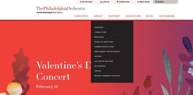 フィラデルフィア管弦楽団のWebサイトは魅力的です。すっきりした見た目で使いやすく、文字も読みやすいです。