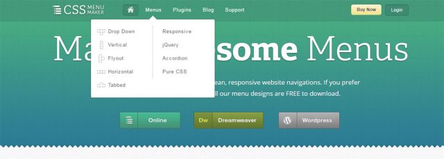 皮肉なことに、CSS MenuMakerのWebサイトはとても素敵なトップメニューのデザインです。ドロップダウンは吹き出しのような形のコールアウトの矢印で、その中に一次リンクが含まれています。