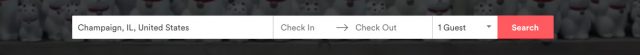 Airbnbでは、人々は主に旅行の滞在先を見つけるためにサイトへ訪れます。そのため、Webサイトでもっとも大きく目立つコールトゥアクション(CTA)の要素は、フロントページ中央にある予約詳細のバーです。「探す」ボタンはピンクがかった赤色で目立つようにしています。また半透明の黒いバーがCTAの背景にまたがっており、CTAの要素を強調しています。