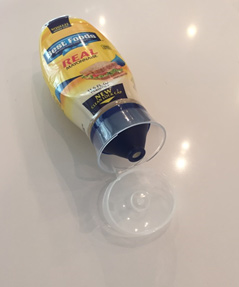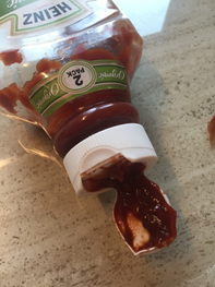 たとえば、上下逆さまに置くことができるケチャップのボトルをしばらく使用すると、ケチャップがふたの中にこびり付いてしまいます。さらに悪いことに、向きが逆さまなので蓋に圧力がかかってしまい、蓋を開けたとき衣服にケチャップが飛び散ってしまうことがあります。
