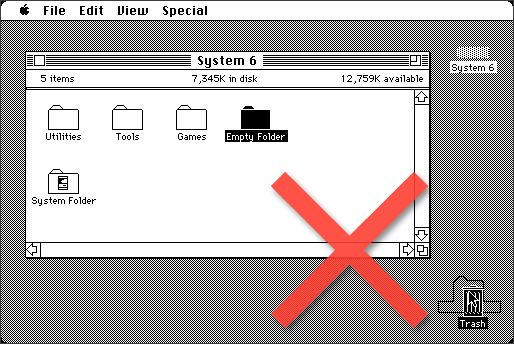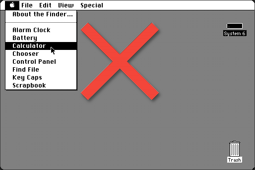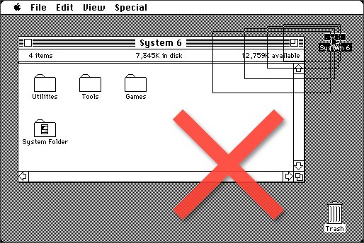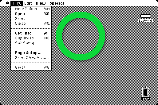 ダブルクリックとドラッグは思いつくことができなかったので、アプリを起動して文字を入力したり絵を描くことはおろか、フォルダーを開くことも、ファイルを移動したり捨てることも、メニュー項目を選択することもできないわけで(当時のMacのメニューは、メニューを開いてからマウスボタンを離さずにそのままドラッグしてメニュー項目を選ぶ必要がありました。マウスボタンを離してしまうとメニューが閉じてしまいます)、コンピューターとして意味のある使い方は何もできなかったことになります。