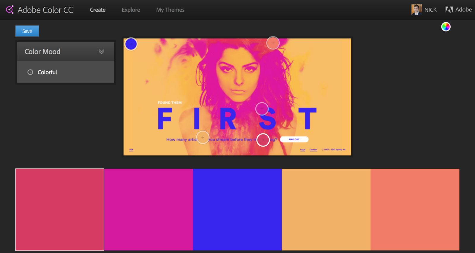PalettonはAdobe Color CCに似ています。この2つの違いは、5つの色だけに制限されておらず、さらに色を増やせることです。
