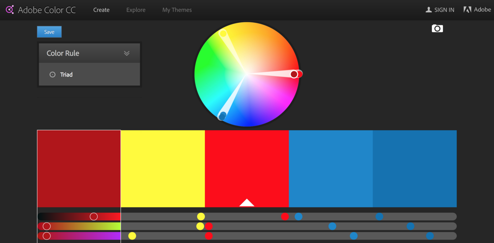 以前Kulerとして知られていたこのツールは、長い間使用されてきました。Web版とデスクトップ版として提供されています。Web版では、カラーホイールでカラースキームを作ることができます。