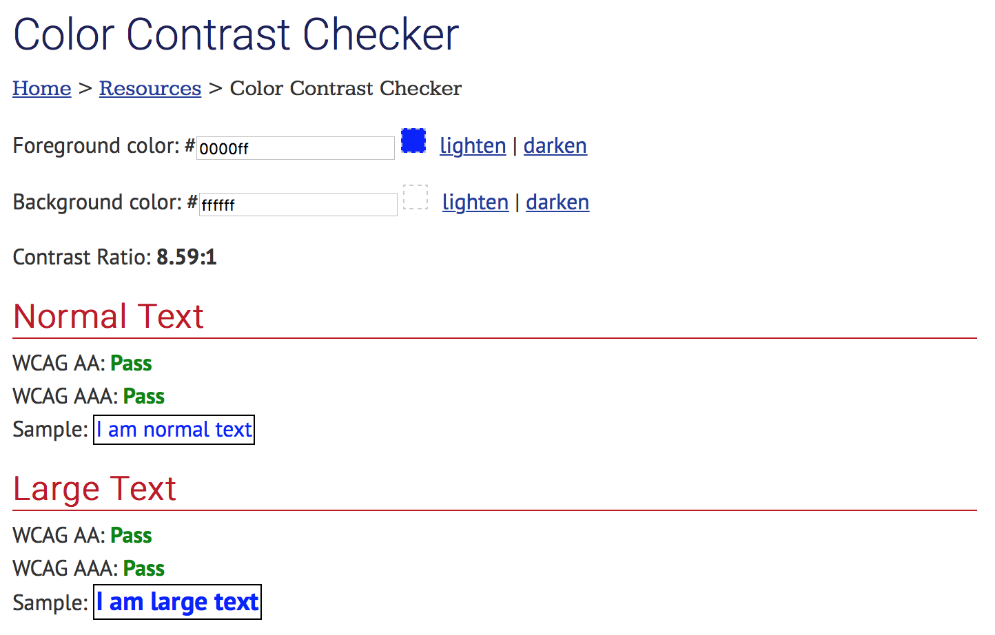 色には相性がいい色と悪い色があります。にもかかわらず、AAテストに合格しないサイトやアプリが多数あることには驚かされます。そのようなサイトの仲間にならないようにしましょう。テキストに色を付ける場合は、色のコントラストが判断できるか、UIの色をチェックすることが不可欠です。 WebAIM Color Contrast Checkerを使用して色の組み合わせをテストしましょう。