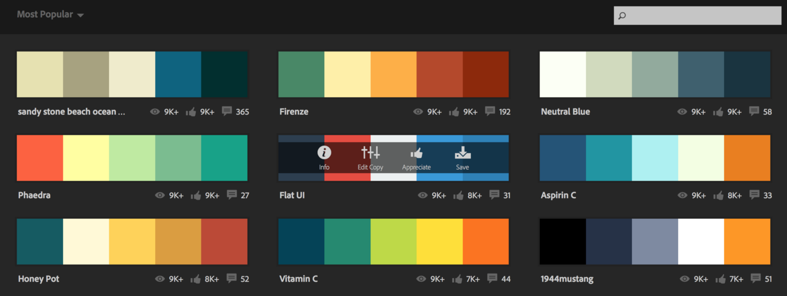 「探索」セクションから、Kulerコミュニティの何千もの色の組み合わせを検索することもできます。