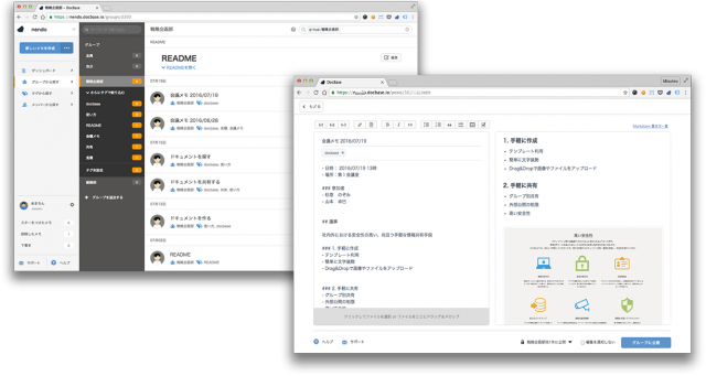 DocBaseは、Markdown形式のWikiのような情報共有ツールです。さまざまな機能がありますが、我々は以下のような理由でDocBaseを選びました。
