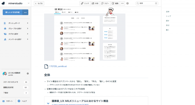 このような問題に対処するために、UX MILKチームではプロトタイプを埋め込み説明を追加したメモを作成しています。また、Adobe XDのファイル共有の場としても使っています。