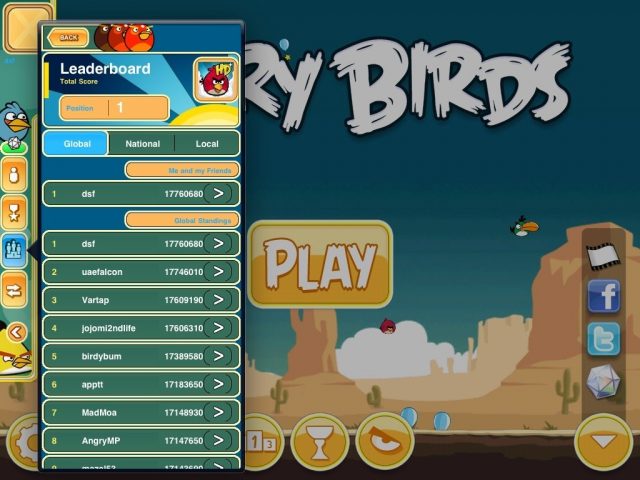 従来、リーダーボードはゲームで使用されます。上にあるAngry Birdsのリーダーボードでは、ユーザーは世界、国内、地域の中からリーダーボードの見方を選択することができます。また特定の友人のグループに限定することもできます。