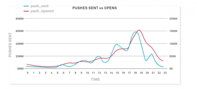 Andrew Chen氏のリサーチによると、エンゲージメントがもっとも高い午後6時~8時の間に、プッシュ通知を送るのが良いそうです。ただ、ユーザーのタイムゾーンに合わせて、午後6時~8時に送りましょう。