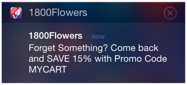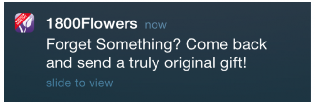 1–800-Flowersでは、バレンタインデーに向けてまったく異なる2つのメッセージを用意して、ABテストを準備しました。彼らはあるメッセージを2種類作成して、少数のサンプルにテストを行いました。サンプルユーザーは、ショッピングカートにアイテムを追加したものの、購入を完了しなかった人たちでした。