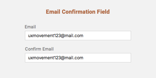 多くのユーザーは、メールアドレスの入力内容をコピーして、確認フィールドに貼り付ける傾向があります。これでは、ユーザーが間違ったメールアドレスを貼り付ける可能性があるため、確認フィールドの目的に反してしまいます。確認フィールドは、ユーザーのメールアドレスの入力ミス防止に役立ちません。