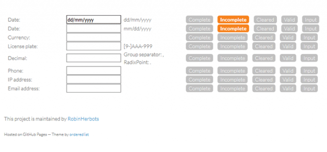 日付や電話番号、通貨などのデータ入力を非常に容易にするのがInputmaskです。カスタム書式が定義されたフィールドにユーザーがインタラクションすると、フィールドにフォーマットが表示されます。またフォーマットをユーザーに知らせるだけでなく、入力データが有効であることも確認します。