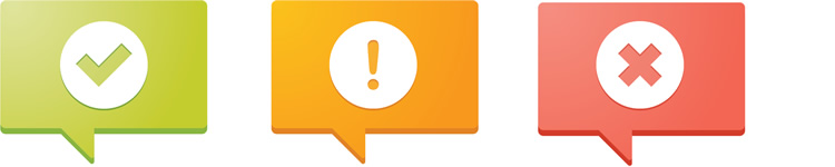 しかし、色だけに依存するのはやめましょう。なぜなら、色覚障害のあるユーザーが混乱してしまう可能性があるからです。赤みがかった緑色と黄緑色のような多くの人が認識しにくい色の組み合わせや、微妙に違う色合いのような区別が難しい色の組み合わせは使用しないようにしましょう。