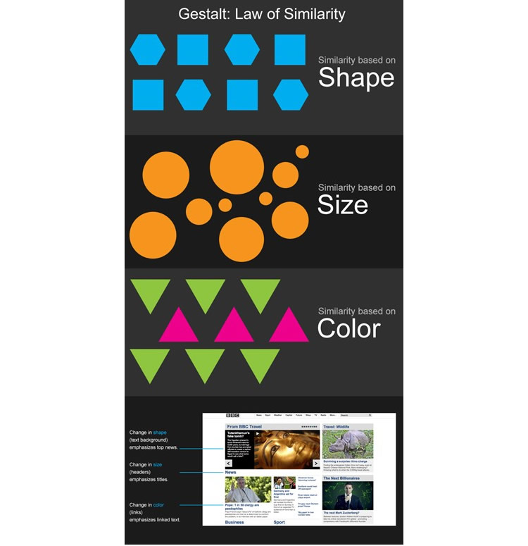 ゲシュタルトの類同の法則(出典:Interaction Design Foundation