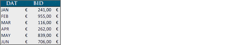 表は、ユーザーがすぐに認識して比較できるようにデータリストを表示したいときに便利です。情報を表示する方法の中でもっとも理解しやすいとは言えませんが、ユーザーが詳細を見たいときには必要になることがあります。少なくとも表は生のデータよりは理解しやすい情報であり、色を使用することでさらにわかりやすくなるでしょう。