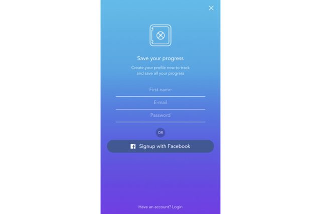 メールアドレスでの登録を選択すると、オンボーディングにおけるよくある画面がもう1つ表示されました。Calmは、ここでもプロフィールを作成する理由として「進捗を記録するため」という価値を明示しています。