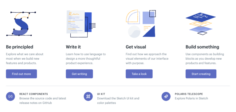 ShopifyのPolarisデザインシステムはその最善例の1つです。Shopifyはすでにコアセクションのすべてをホームページで公開しています。