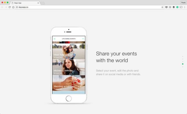 これは私のお気に入りのアプリの1つ、Daysです。Daysはイベントまでの日にちをカウントダウンするアプリです。アプリのランディングページの各セクションには、ほとんど文章がありません。上のスクリーンショットは、ランディングページの1つのセクションです。コピーが非常に短いのがわかります。見た目も良く、とても読みやすいです。