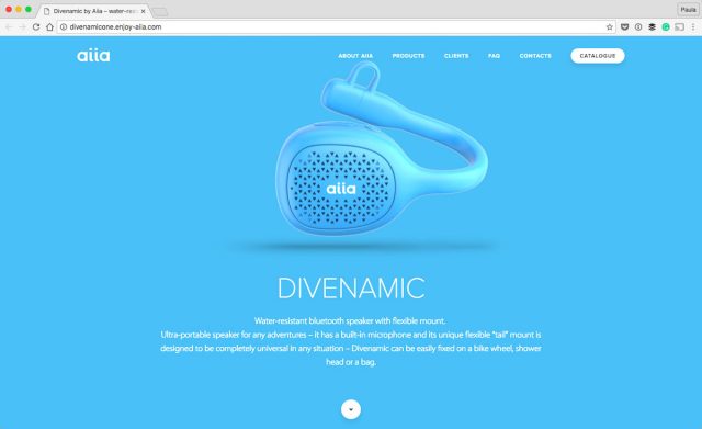 防水スピーカーAiiaのランディングページは素晴らしいです。スクロールは風変わりであるものの、整ったページが私は大好きです。短いコピーは、ユーザーを膨大な言葉で迷わせることなく、メインとなるアイデアを伝える素晴らしい方法です。