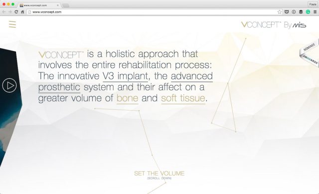 2つのWebサイトを比較してみましょう。上のスクリーンショットはVConceptのもので、下のスクリーンショットはBornのものです。VConceptのほうがページのコンテンツが少ないですが、意味を理解するのがより大変です。これは、VConceptのページ上にある装飾が邪魔をしているからです。背景は三角形のパターンで、背後で線も動いています。コピーには、普通のテキストと下線付きのテキスト、金色の下線付きのテキストの3つスタイルがあります。さらに段落内にはロゴまで使われているのです。これでは多すぎます。