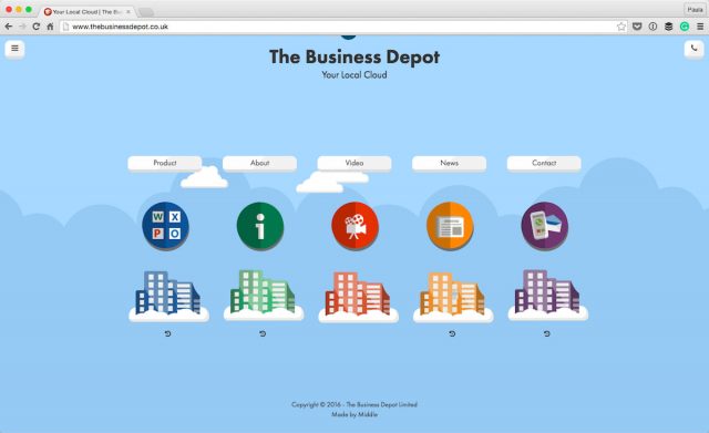 The Business Depotの色の選択について話しましょう。これは企業顧客向けのITクラウド製品のサイトで、押し付けがましいWebデザインの典型です。トップページと製品ページ、コンタクトページの間には、あまりに多くの種類の色調が使われています。トップページ上では色が主要な要素になっていて、それぞれのページごとに意味が込められているように見えます。