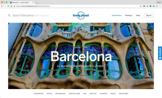 私はずっとLonely Planetのファンです。類似したデザイン要素を再利用しているので、現在のデザインスタイルは非常に優れています。各都市のページは同じテンプレートを使用しているため、見やすいです。Lonely Planetにはたくさんのコンテンツがあるので、同じテンプレートを使用することで読みやすくしています。