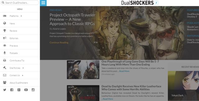 また、インラインの検索フィールドを、ナビゲーションの中に隠すように使うこともできるでしょう。DualShockersでは、すべてのスクリーンサイズで動作する素晴らしいスライドメニューを使っています。