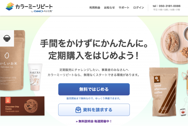 弊社の「カラーミーリピート」は、定期販売をしたい事業者が、決済機能付きランディングページを作成し受注発送を行えるサービスです。