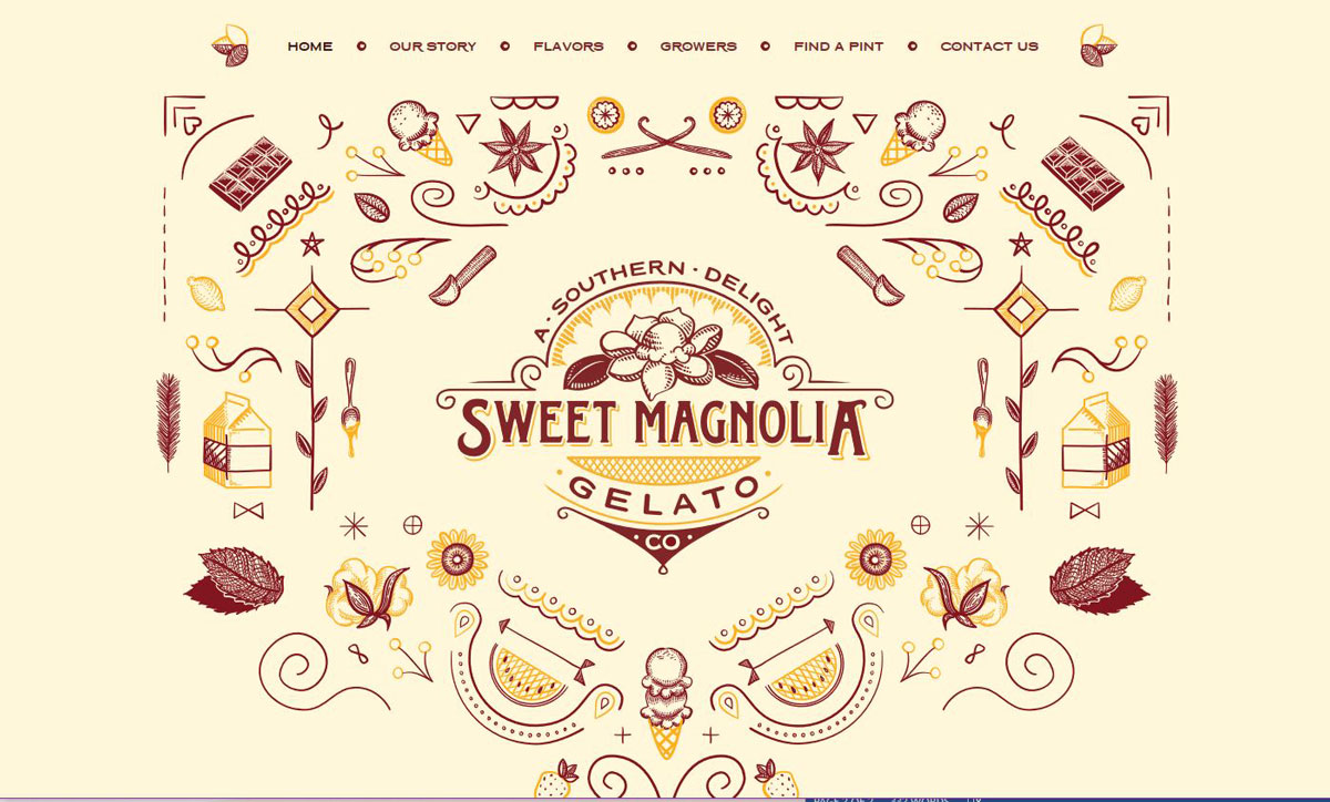 凝った筆使いと色使いで、大きな太字のレタリングは、一瞬でユーザーを懐かしい気分にさせます。太い線で粗削りな筆記体のスタイルでも同様の効果があるでしょう。