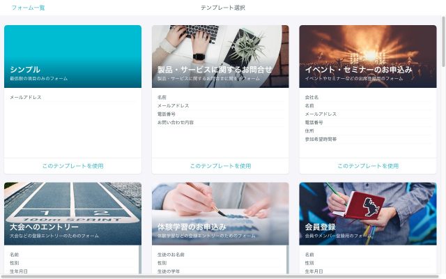 フォームを作る際にテンプレートがたくさん出てくるのですが、これもユーザー体験的に良い見せ方だと思いました。問い合わせのユースケースがかなり細かくテンプレート化されているので、ほかの用途もイメージしやすく、別の機会でも使いたいと思わせてくれます。